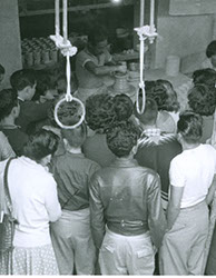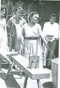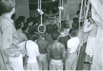 1960Grupo de alumnos observando a una persona haciendo alfarería.
