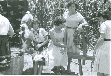 1960Grupo de mujeres reunidas junto a una rueca.