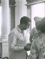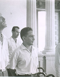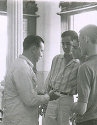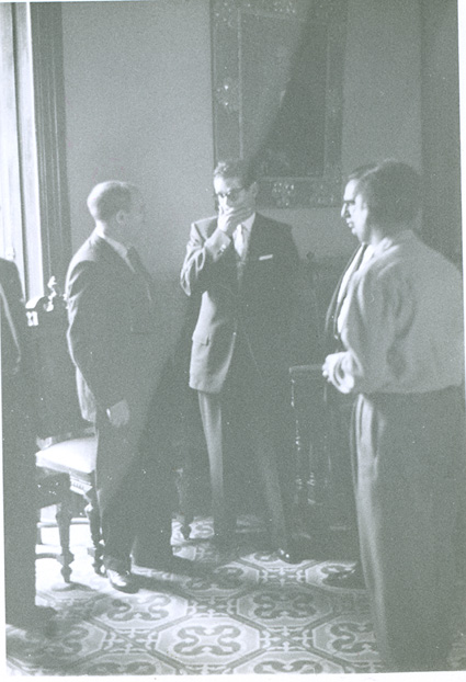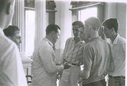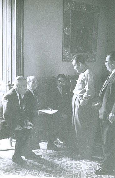 1962El maestro Eduardo Gorraéz junto con otras personas de pie escuchando.