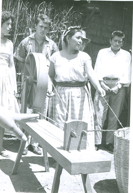 1960Una mujer de la región trabajando con una rueca e hilando.