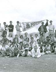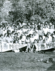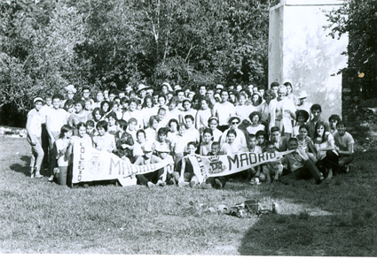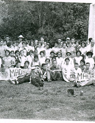 1961Foto de grupo. Aparecen dos banderines del Colegio.
