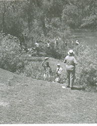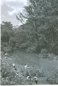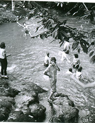 1962Grupo de chicos nadando en un río.