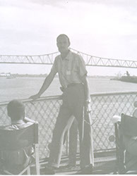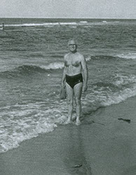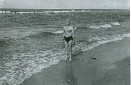 1961Un señor parado a la orilla del mar.