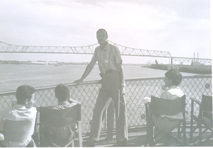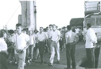 1962Grupo de chicos parados en un muelle.