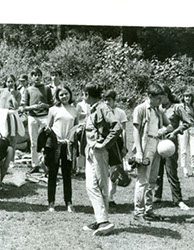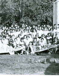 1960Grupo de alumnos reunidos posiblemente escuchando o recibiendo alguna instrucción.