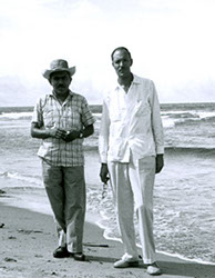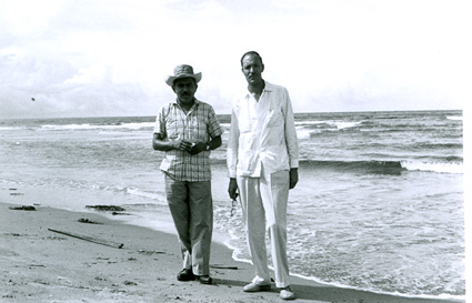 1961El maestro Eduardo Gorraéz junto con otra persona a la orlla del mar.