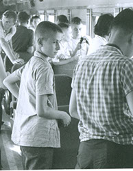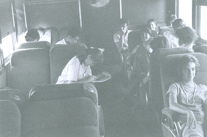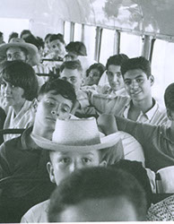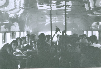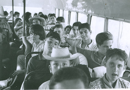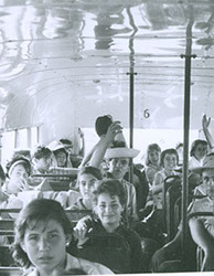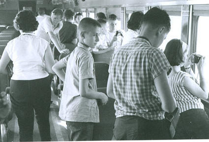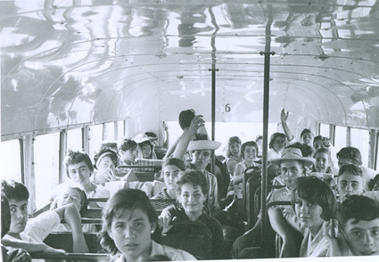 1961Chicos sentados en un autobus.