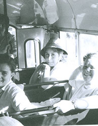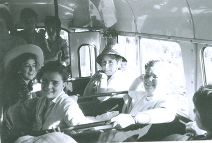1961Chicas sentadas en un autobus.