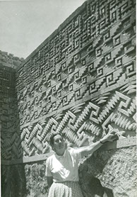 NO IDENTIFICADOLa maestra Pilar Trueta señalando un fragmento de piedra de una construcción prehispánica.