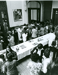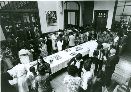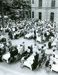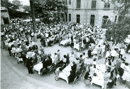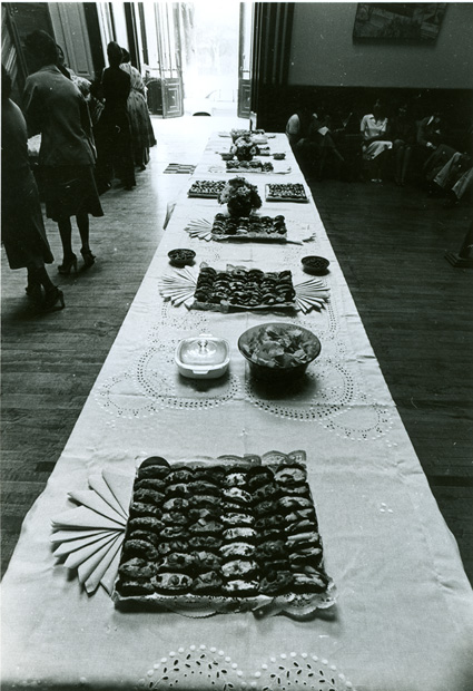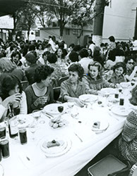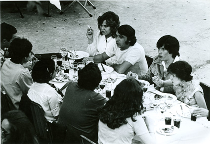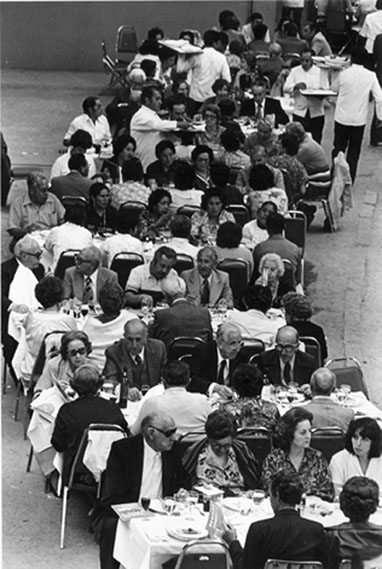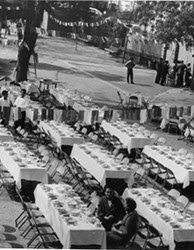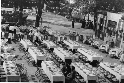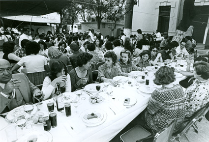 1979Vista de las mesas dispuestas para la comida de despedida.
