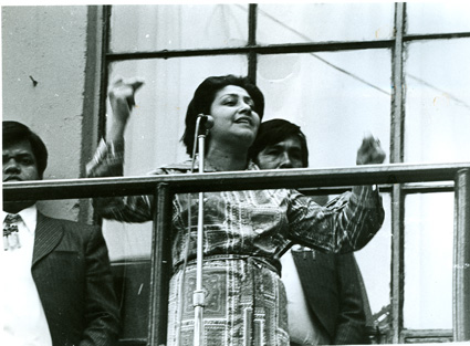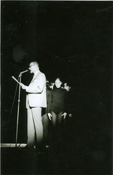 1979La maestra Estela dirigiendo desde el microfono.