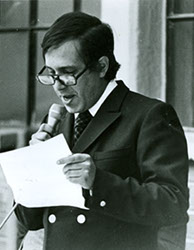 1981Rufino Mujica leyendo un texto.