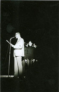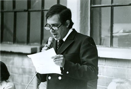 1979Paco Rivero hablando en el microfono.