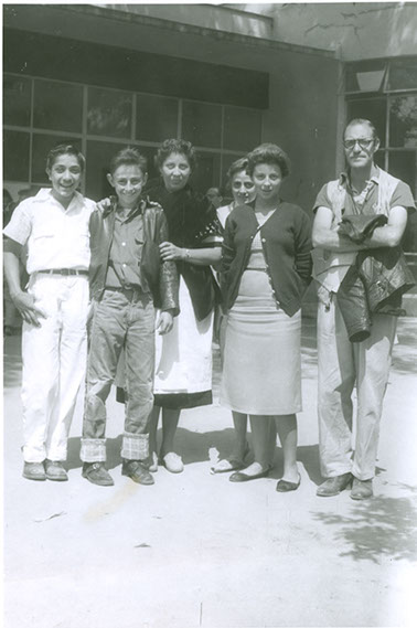 1956Maestra Amparo y el profesor Eduardo Gorraéz junto con alumnos.