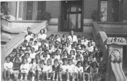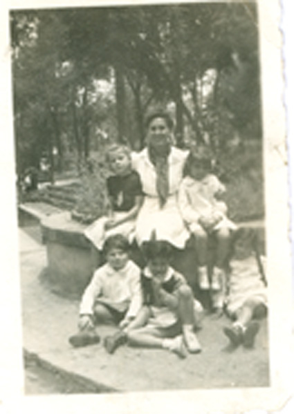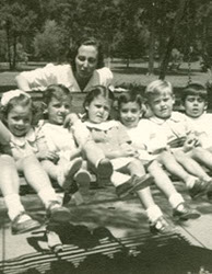 1943Alicia Díaz de Junquito junto con varios niños.