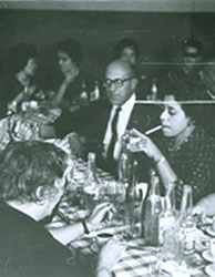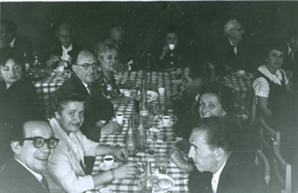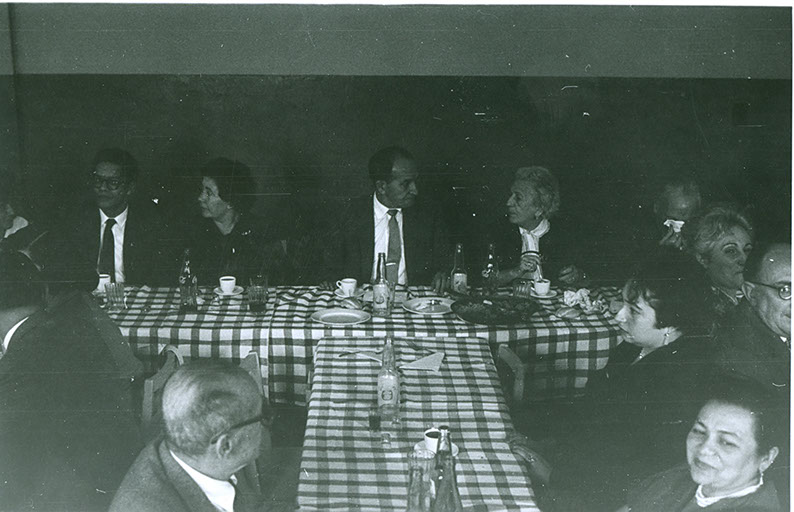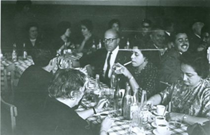 1962Vista de una parte de la mesa con gente sentada tomando café.