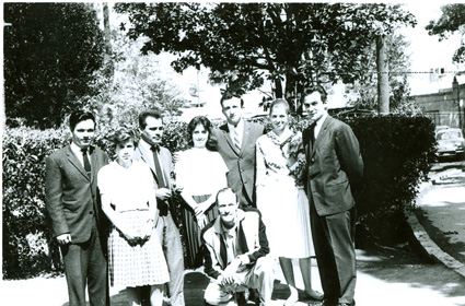 1961Varios MAESTROS al pie de una escalera.