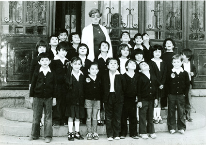 1978Foto de grupo de alumnos de primaria. La maestra está presente.