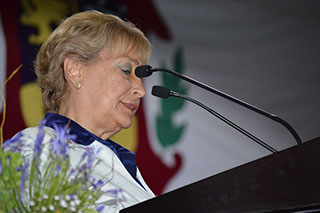 En esta ceremonia hemos celebrado la palabra, la memoria, y hemos disfrutado también del acompañamiento musical que nos recuerda lo importante que es para esta comunidad toda expresión artística. Y hace unos minutos a través de otra forma de expresar que es el video, hemos atestiguado a través de múltiples escenas, diálogos y testimonios que nuestra identidad y sentido de pertenencia se refrendan cada día. Se refrendan con cada nueva generación de egresados, con cada comida de ex alumnos, con cada Verbena, con cada aniversario que como este, han dejado en nuestra historia una cauda de bellos recuerdos, aprendizajes y anéctodas inolvidables, amistades, nuevas familias, nuevos alumnos y con ellos, orgullo y esperanza.