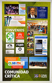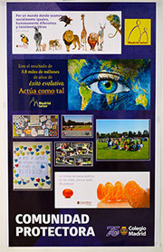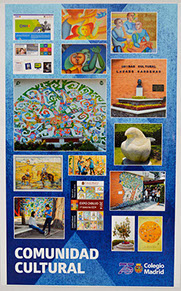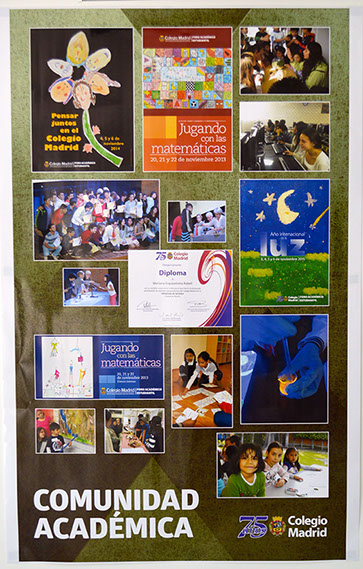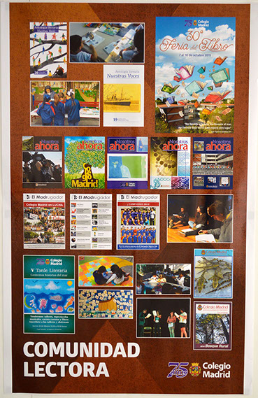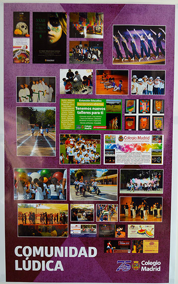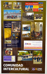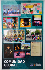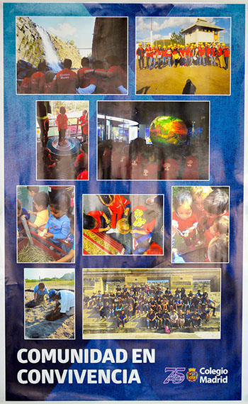Comunidad Colegio Madrid es una exposición de doce carteles que reflejan gráficamente la intensidad de nuestra vida diaria, en la que todos participamos con entusiasmo y trabajo, refrendando nuestros valores y objetivos como comunidad, pero también adaptándonos al presente y dando respuestas al futuro.