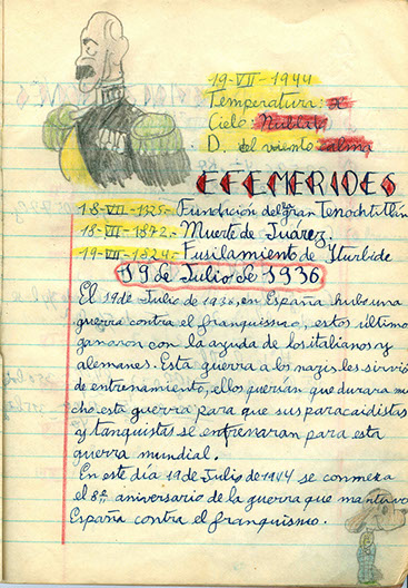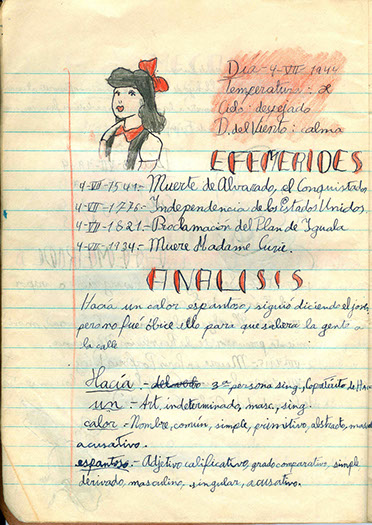 Al lado derecho de la viñeta se escribe la fecha y las observaciones: cielo, viento y temperatura, permitiendo al alumno el contacto con su medio ambiente.